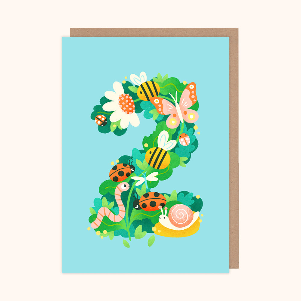 Celebrate their 2nd birthday with this cute animal-themed 2nd birthday card. This unique children's birthday card features adorable illustrated insects & wildlife in the shape of the number "2", and is perfect for celebrating the tiniest of birthdays! This card is part of our Age range.