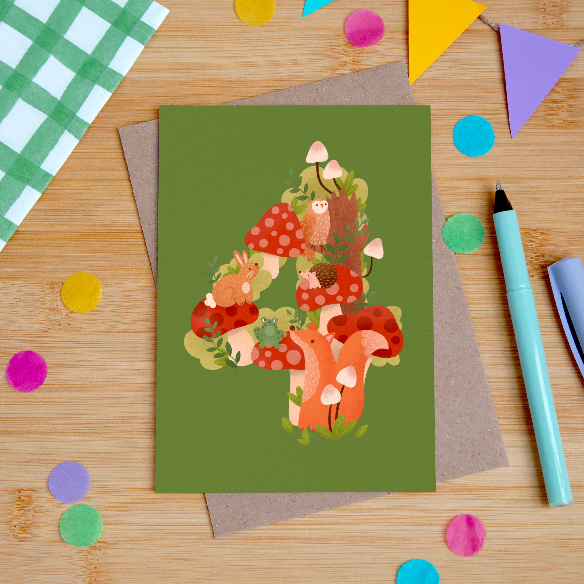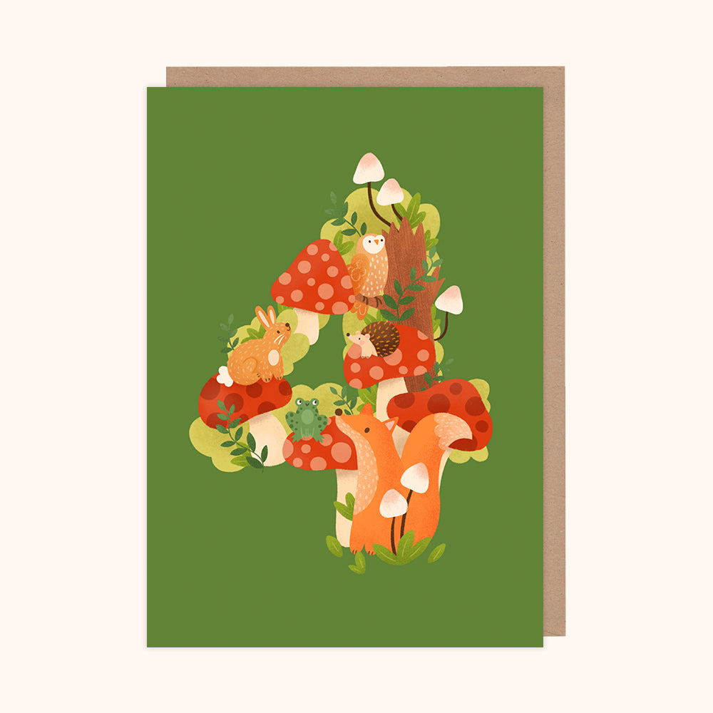 Celebrate their 4th birthday with this cute forest animal-themed 4th birthday card. This unique children's birthday card features illustrated animals & wildlife in the shape of the number "4", and is perfect for celebrating the tiniest of birthdays! This card is part of our Age range.