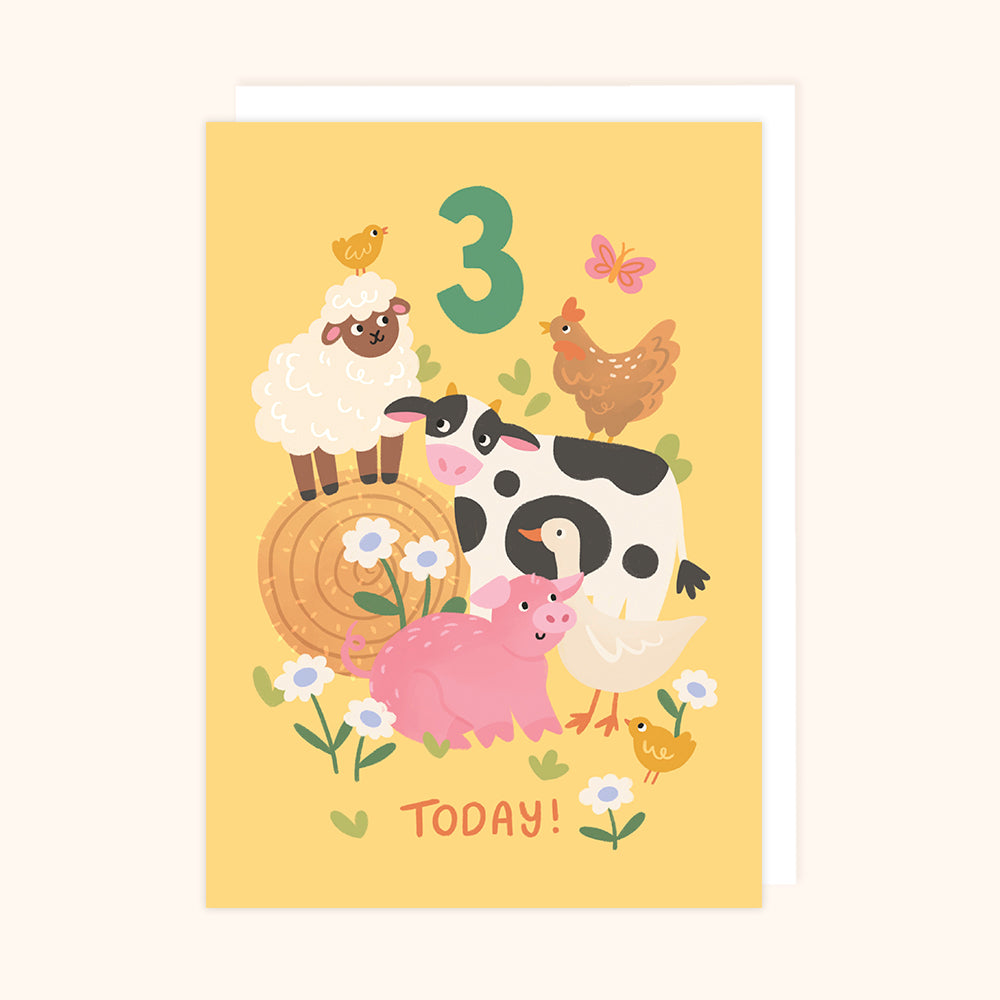 Children’s 3rd Birthday Card – Farm Animals