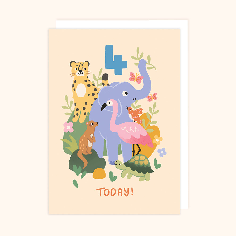 Children’s 4th Birthday Card – Safari Animals