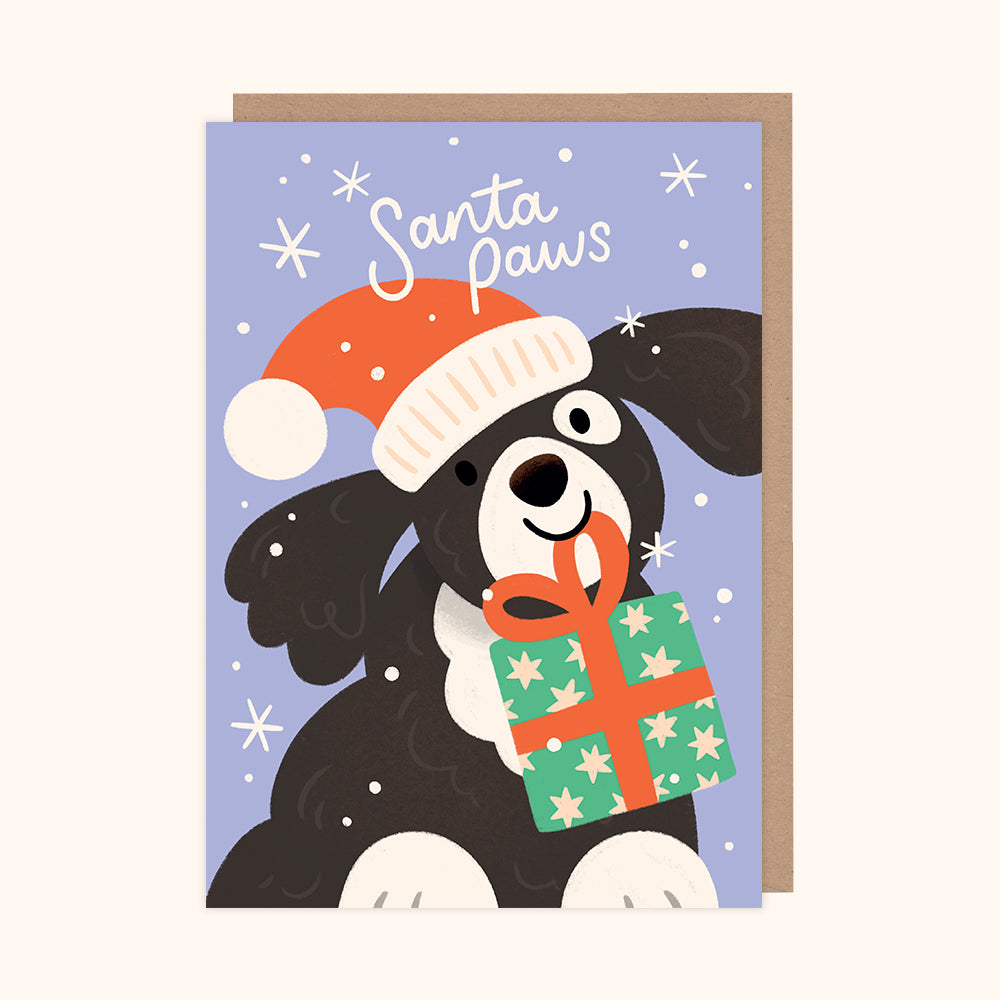 Celebrate the festive season with this lovely Christmas single card. Featuring an illustration of a cute dog wearing a Santa hat & delivering a present, this Christmas card truly captures the magical festive spirit.