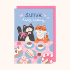 This lovely birthday card is perfect for a sister and cat lovers everywhere. Featuring two adorable cats sitting at a dinner table enjoying some party food and a cup of tea, this card is sure to put a smile on your sister's face.