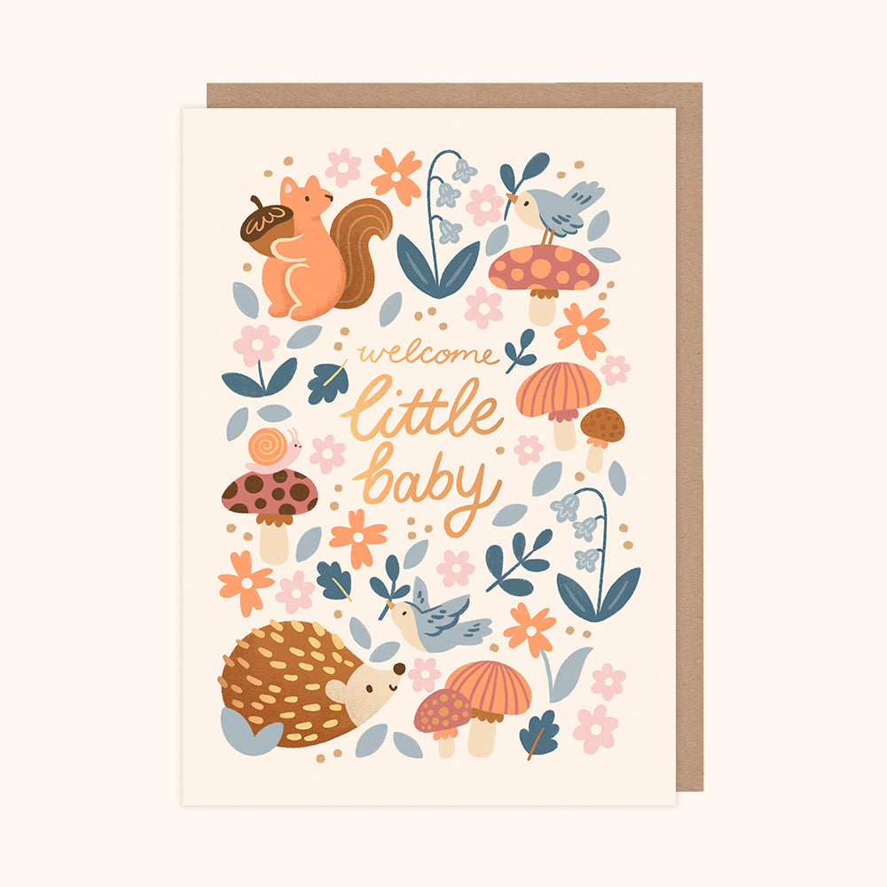 Celebrate the most magical moment in life with this unique and adorable new baby card. This stunning card features illustrated woodland creatures, and is finished with gold foiling for that extra special touch.