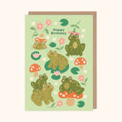 Send birthday wishes with a cheerful chorus of frogs in this fun and playful frog birthday card. Featuring a charming group of illustrated frogs surrounded by flowers and mushrooms, it’s the perfect way to make someone smile on their special day.