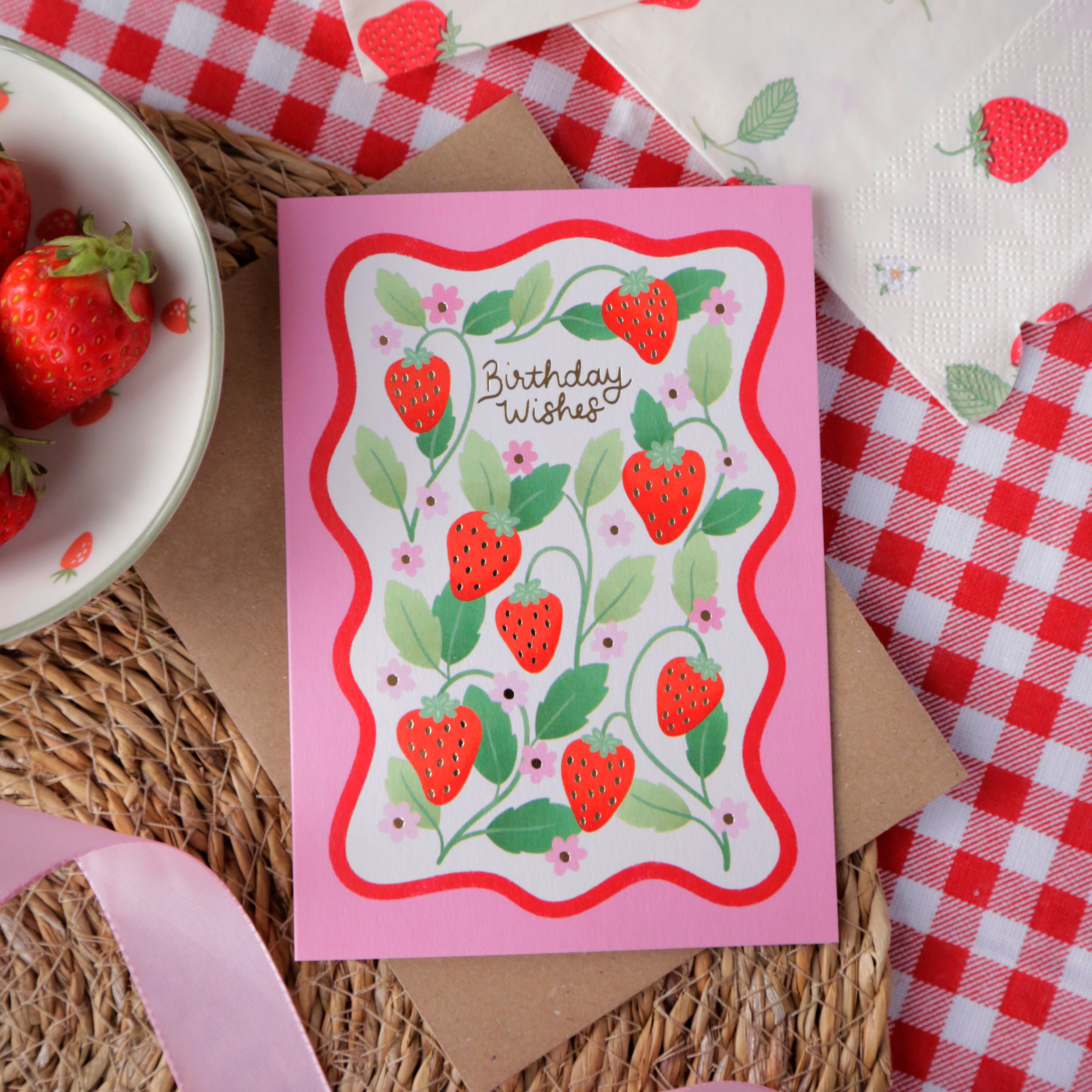 Strawberry Birthday Card, Luxury Foiled Birthday Card