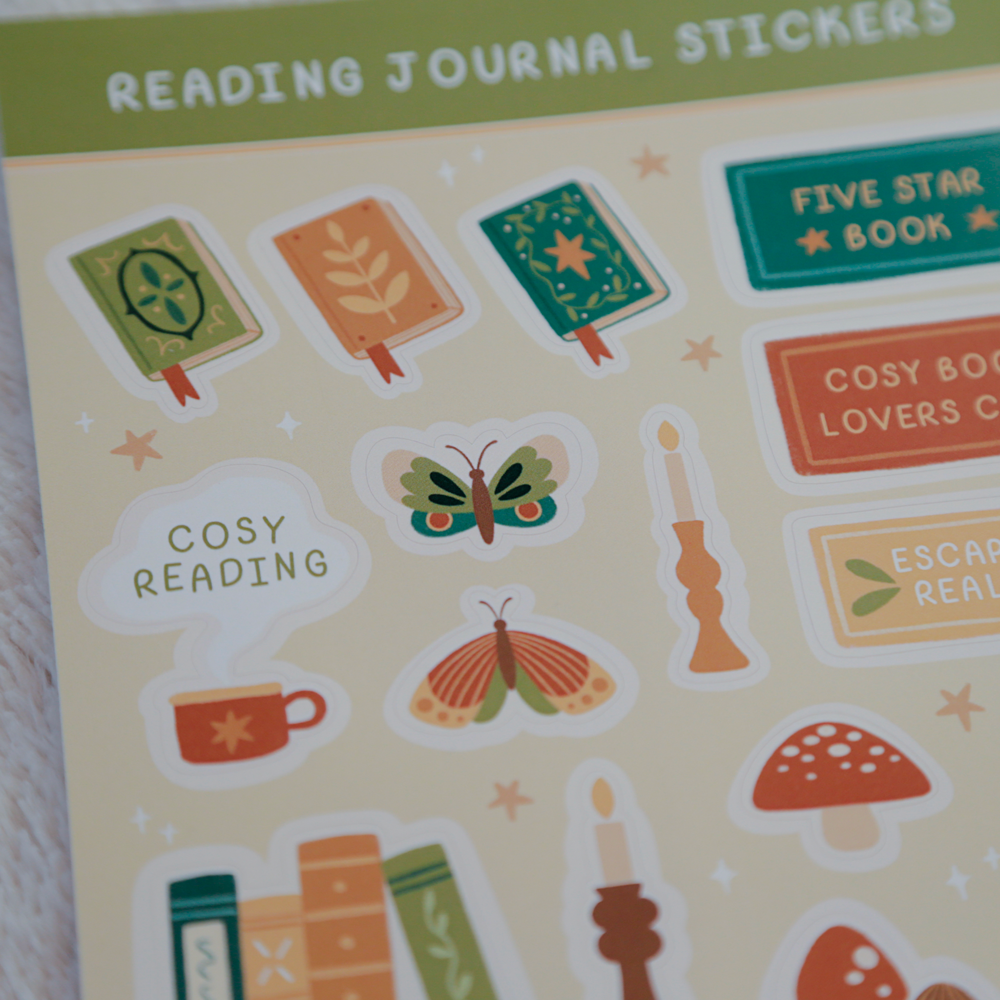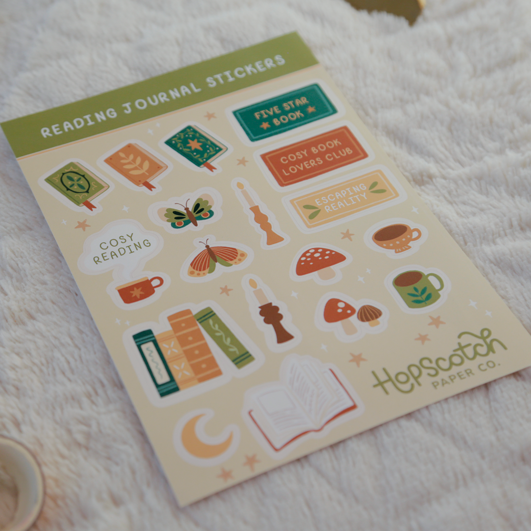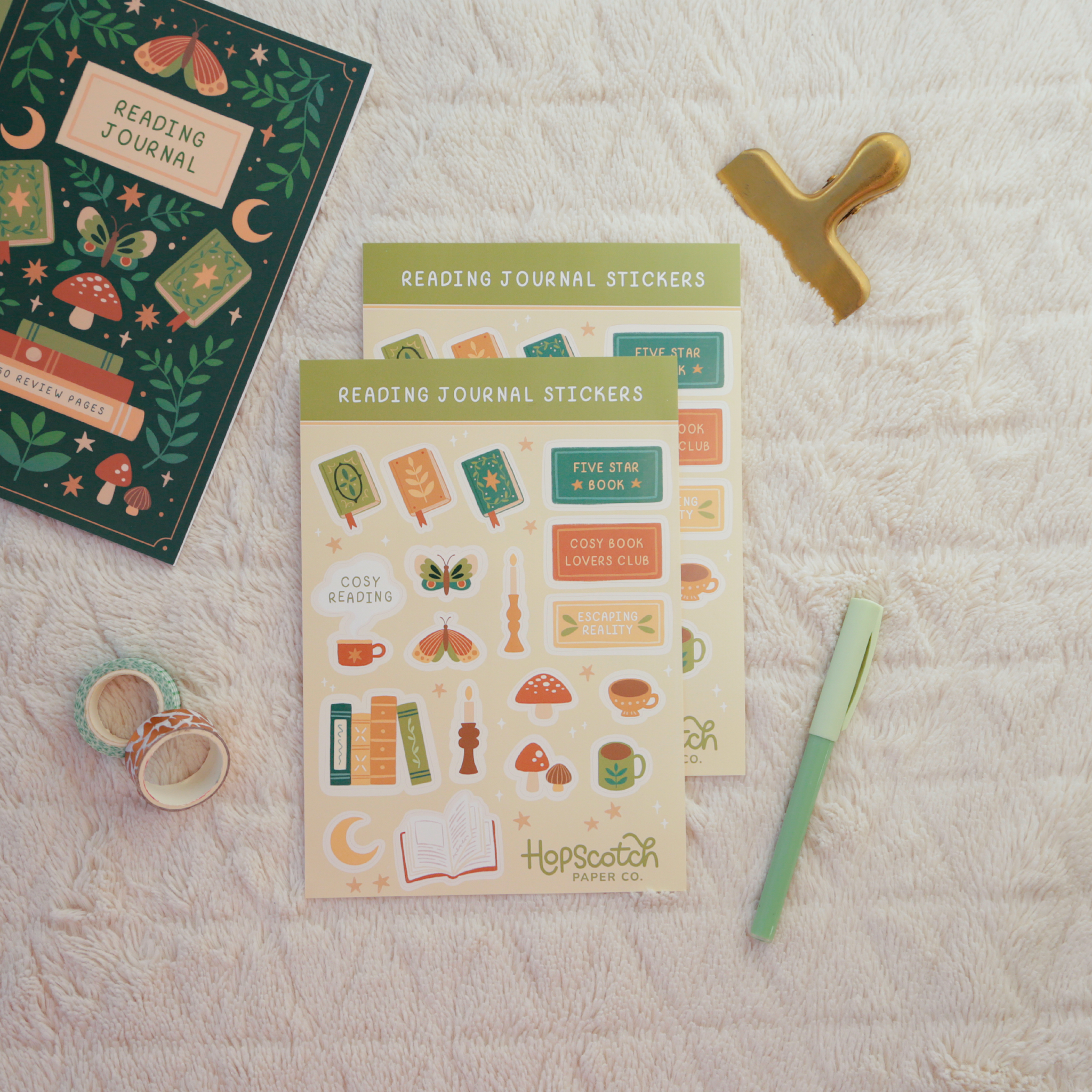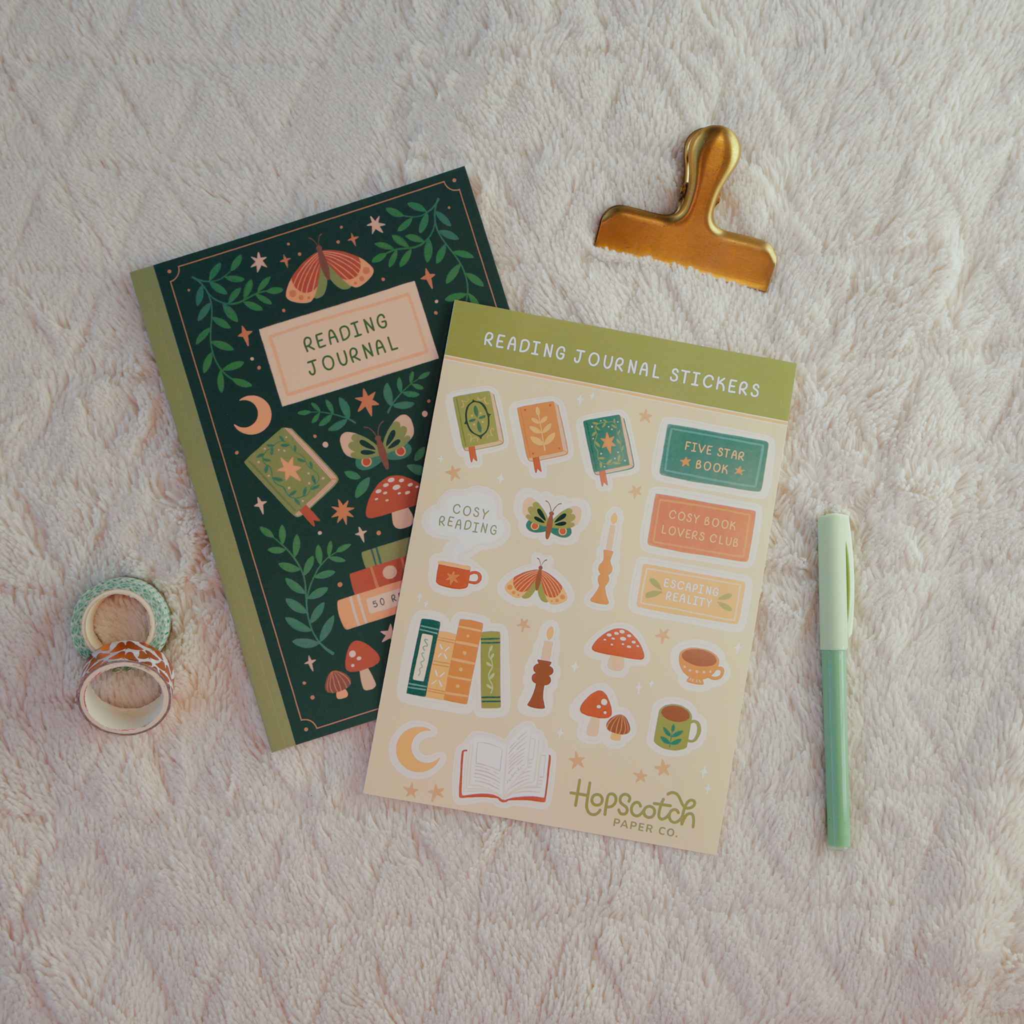 Decorate your reading journal, planner, or notebook with this charming set of Reading Journal Stickers!