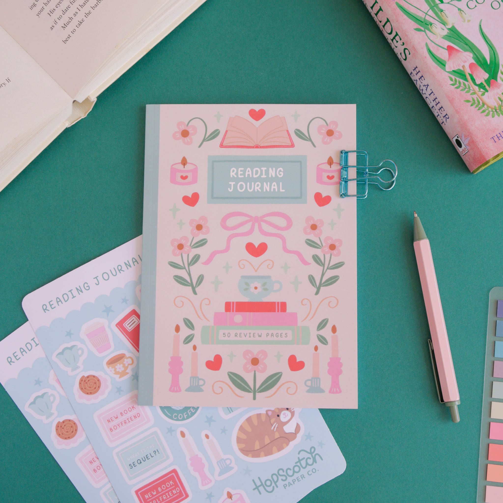 Decorate your reading journal, planner, or notebook with this charming set of Reading Journal Stickers!