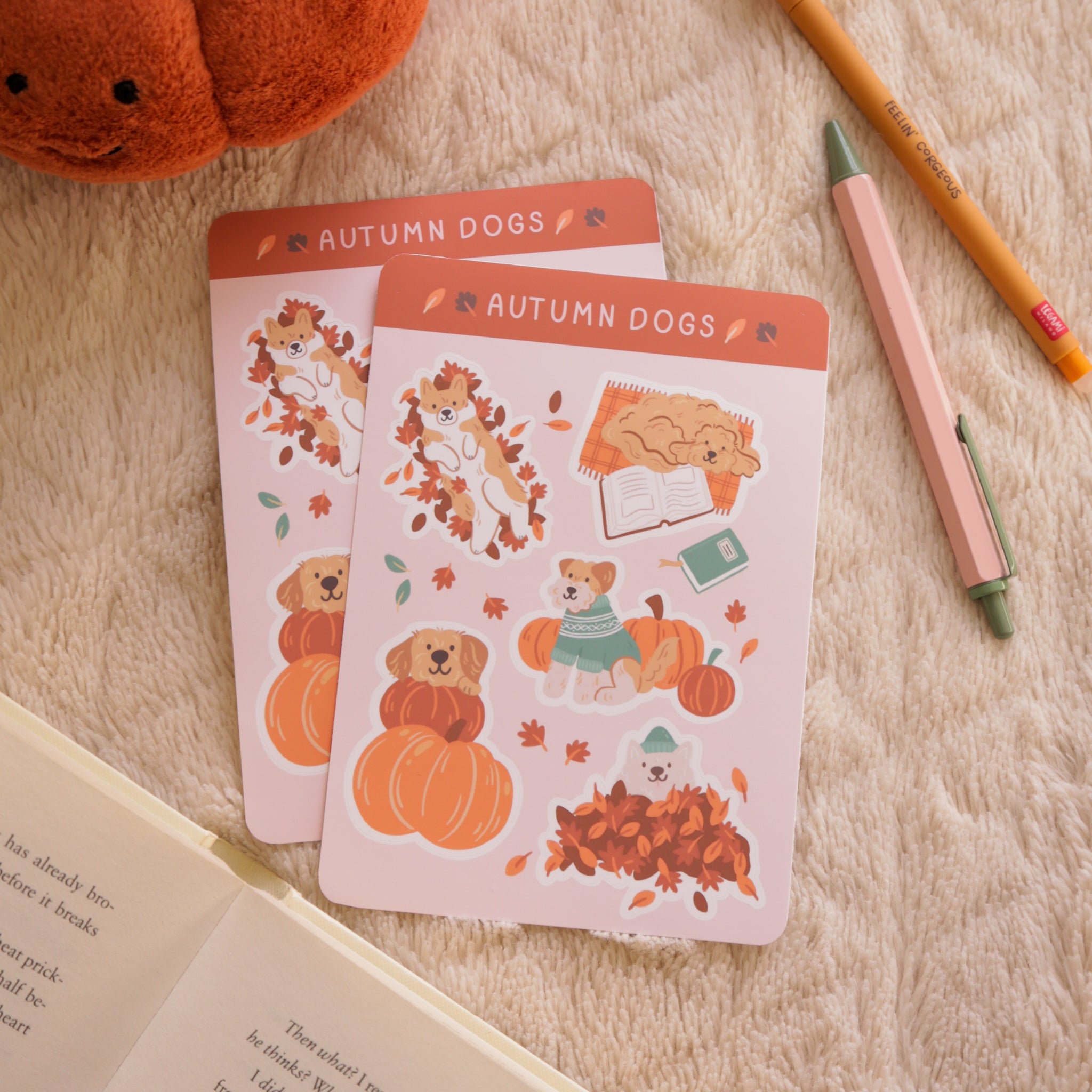 Autumn Dog Stickers – A6 Seasonal Dog Sticker Sheet
