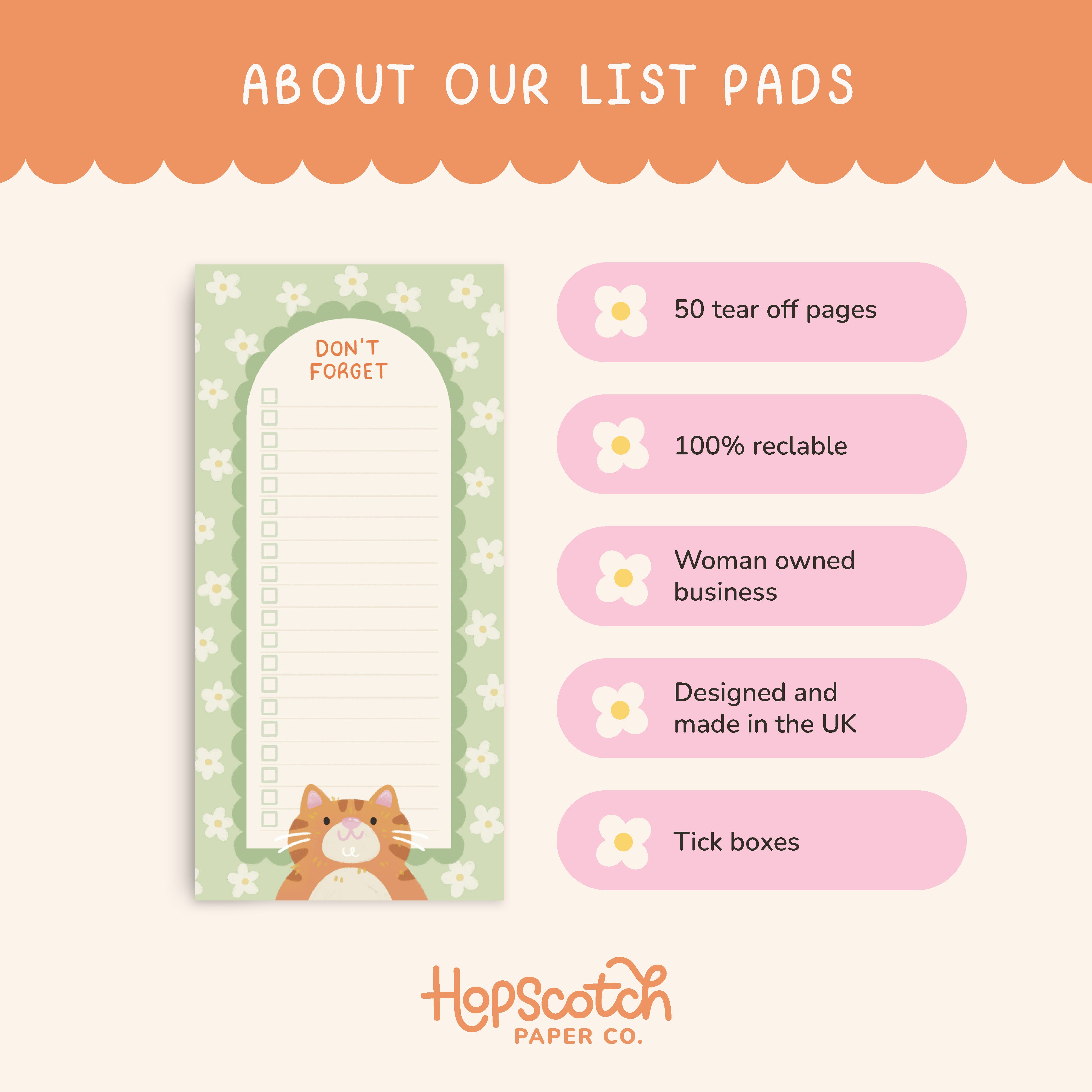 Stay organised in style with this adorable cat notepad, designed especially for cat lovers and stationery fans! Our Cat Lover’s List Pad features 50 tear-off pages with handy checkboxes, making it the perfect to-do list pad for daily tasks, shopping lists, or reminders.
