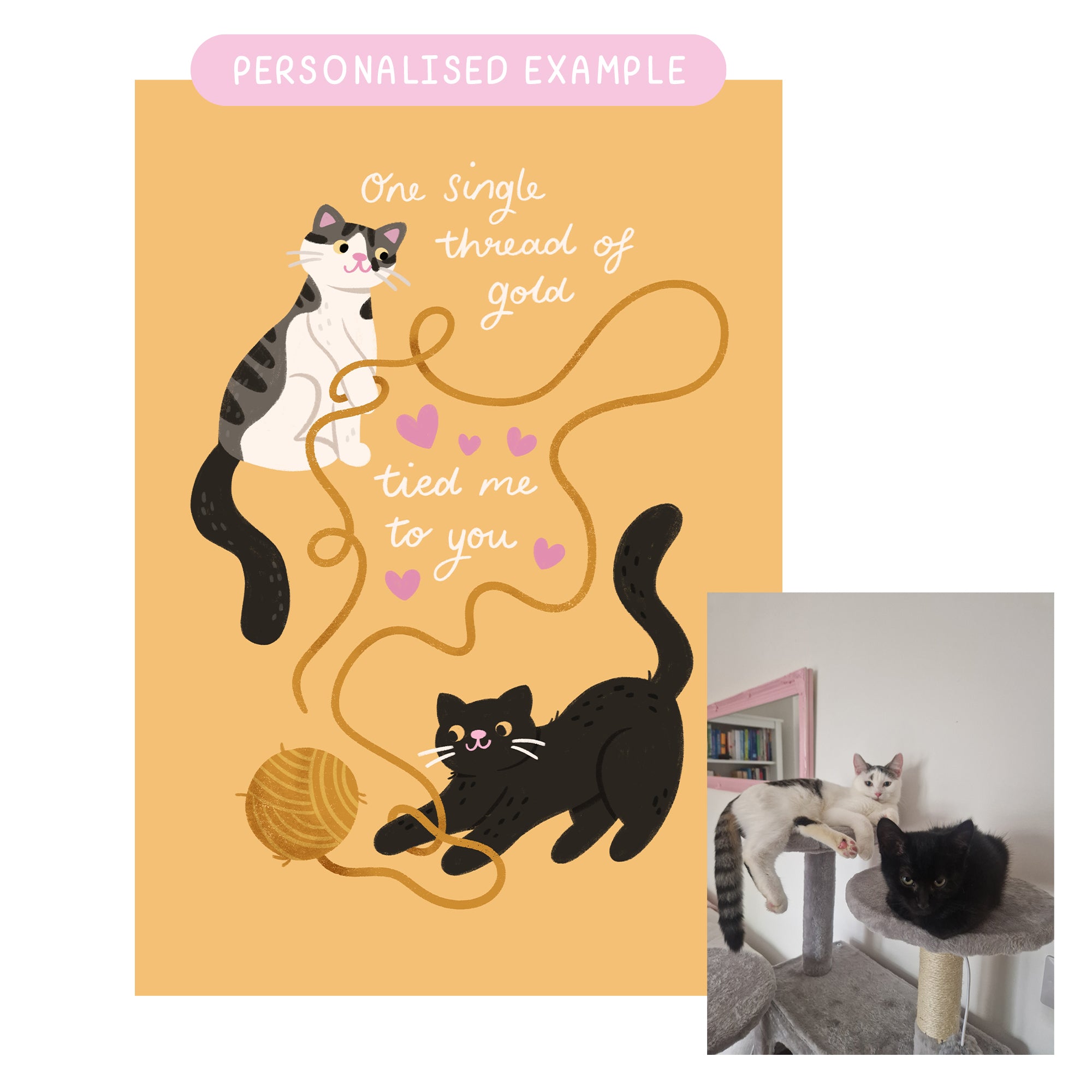 To change the colour and markings of the cats, select the 'personalised' option and send me a few photos of your cats via email to hopscotchpaperco@gmail.com. The non-personalised option is the black & white, and ginger cat.