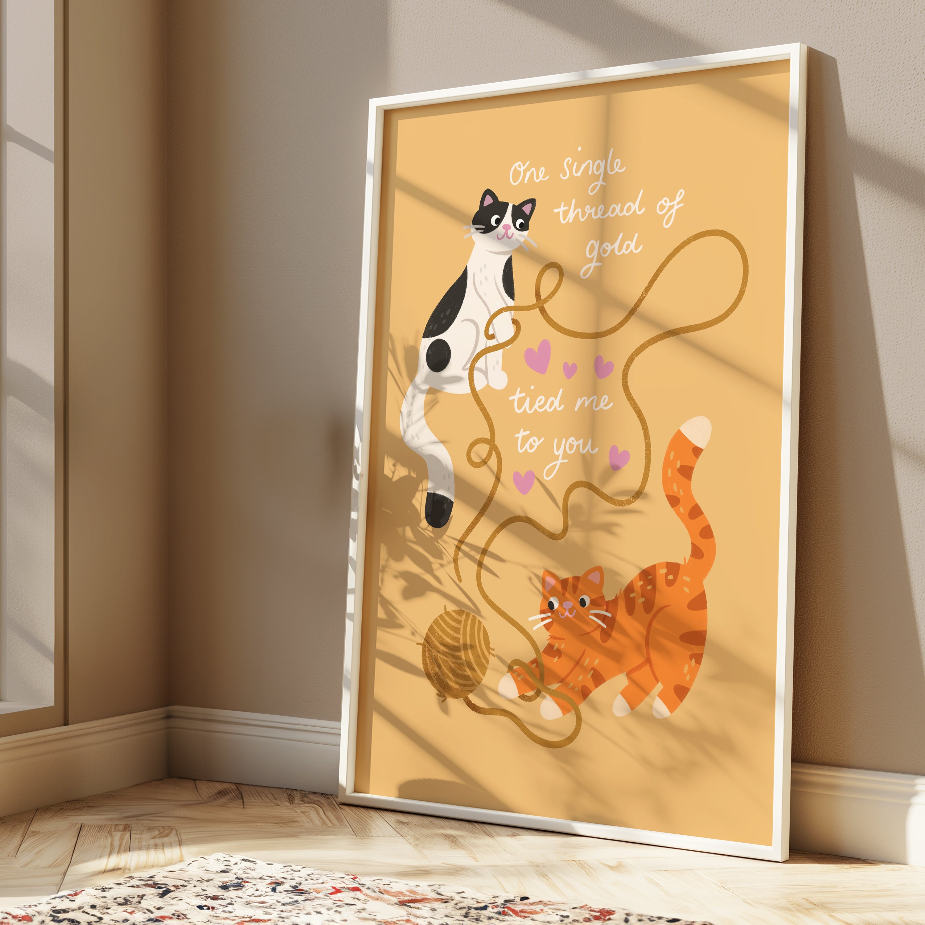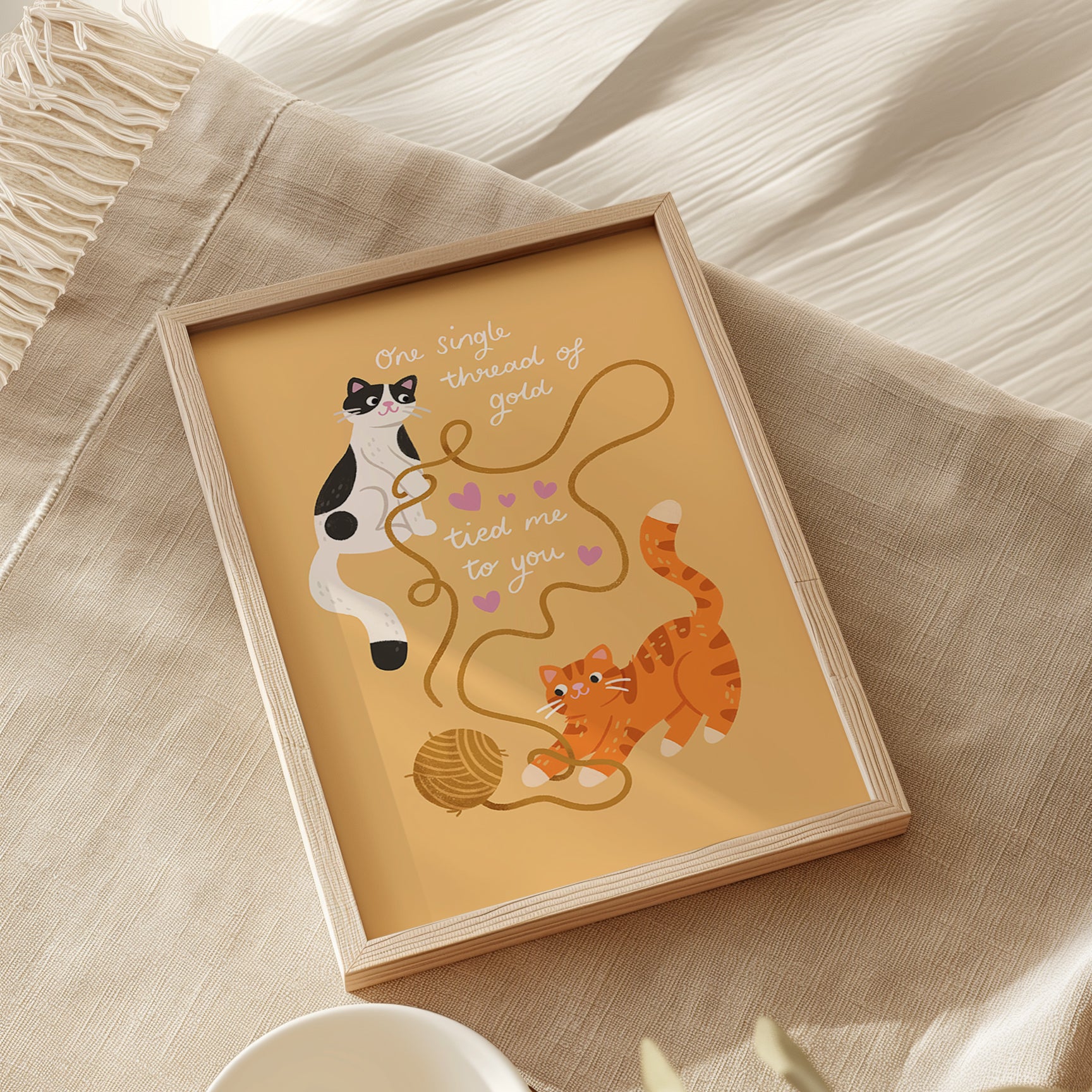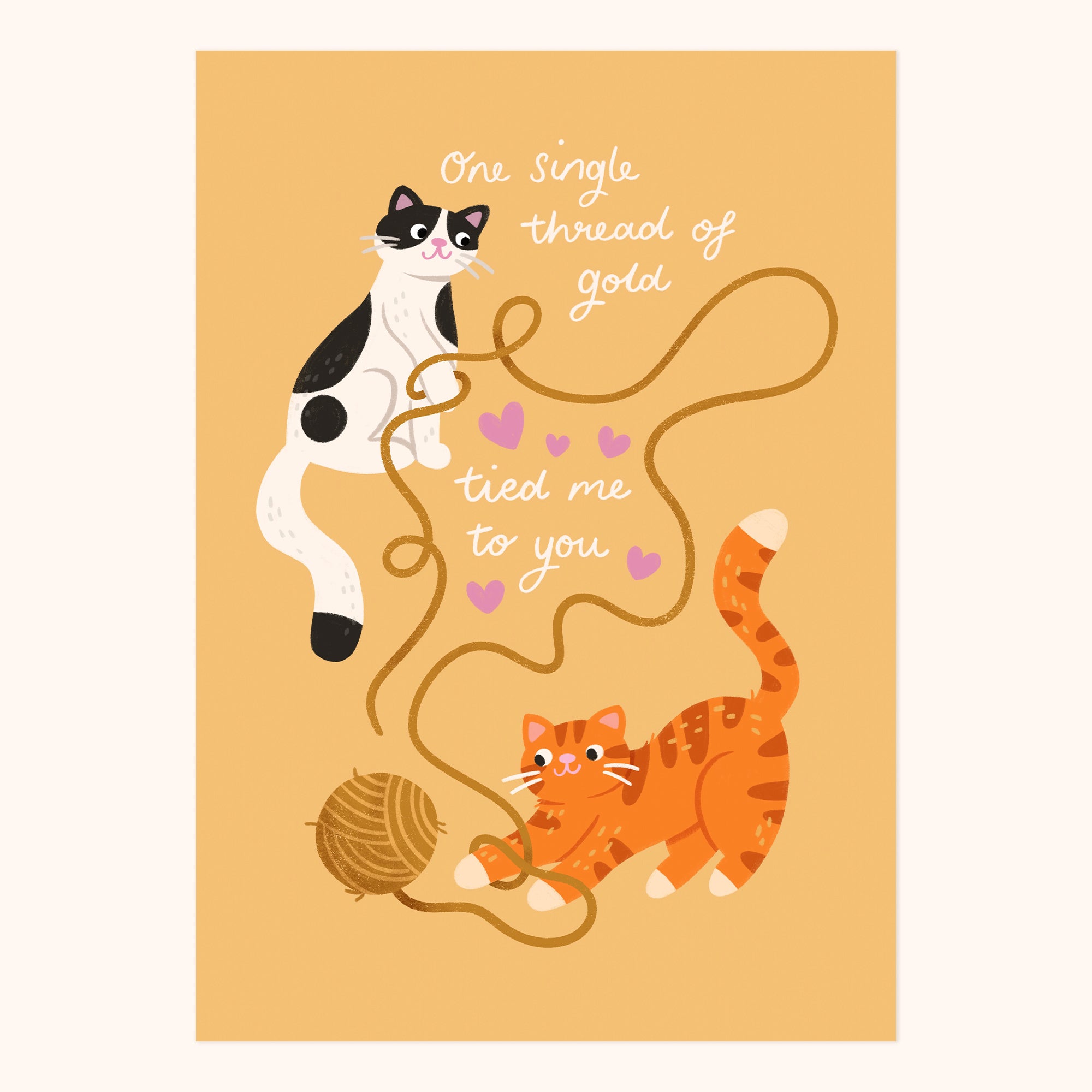 A high quality art print of two cute cats inspired by Taylor Swift's song Invisible String! The perfect gift for a cat loving Swiftie or a little treat for your own wall.
