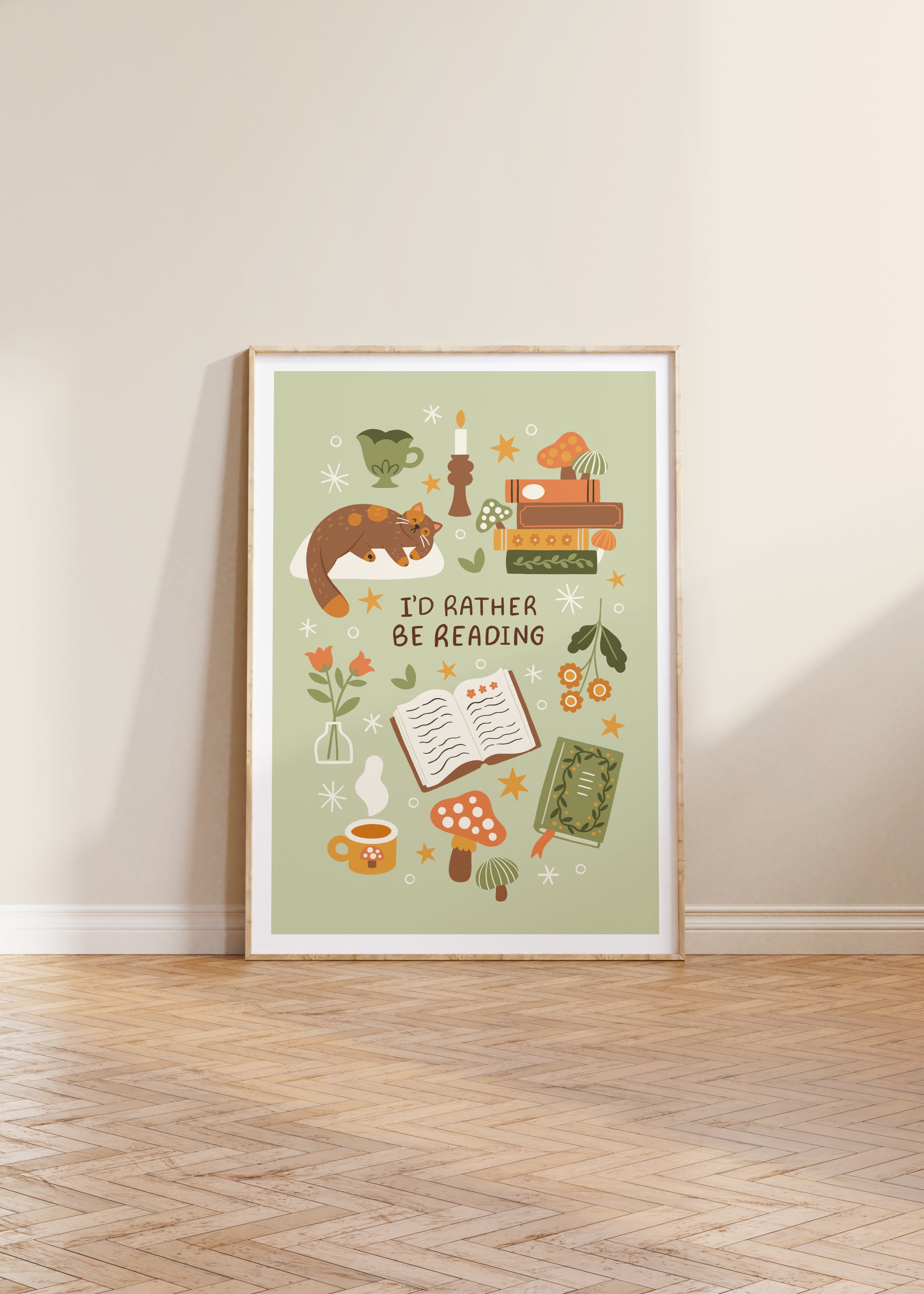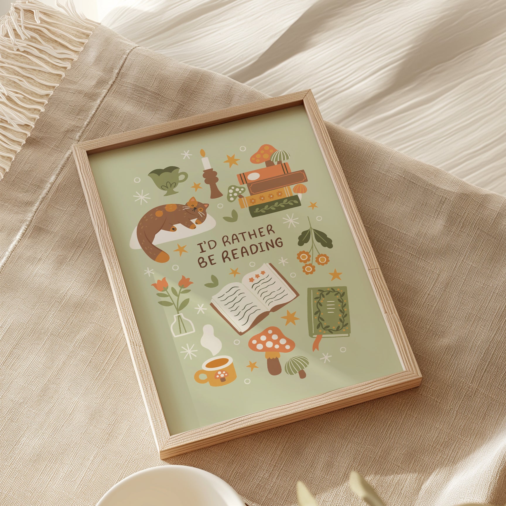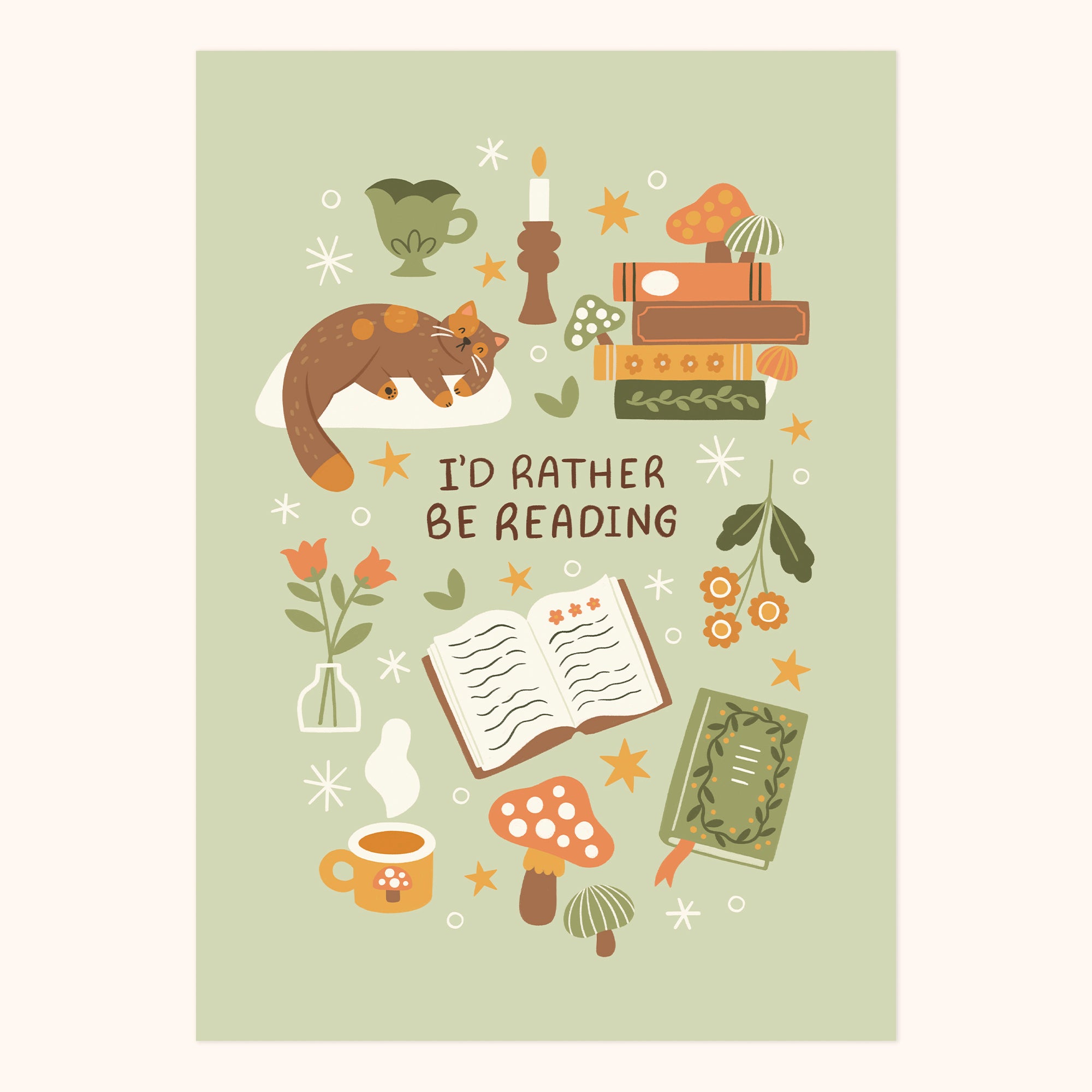 Transform your space with this playful, charming art print—because life is better with cats and books! This cute bookish art print makes a thoughtful gift for anyone who adores reading, cats, or just a splash of cheerful decor. Whether for a birthday, housewarming, or "just because," this print is sure to make someone smile.