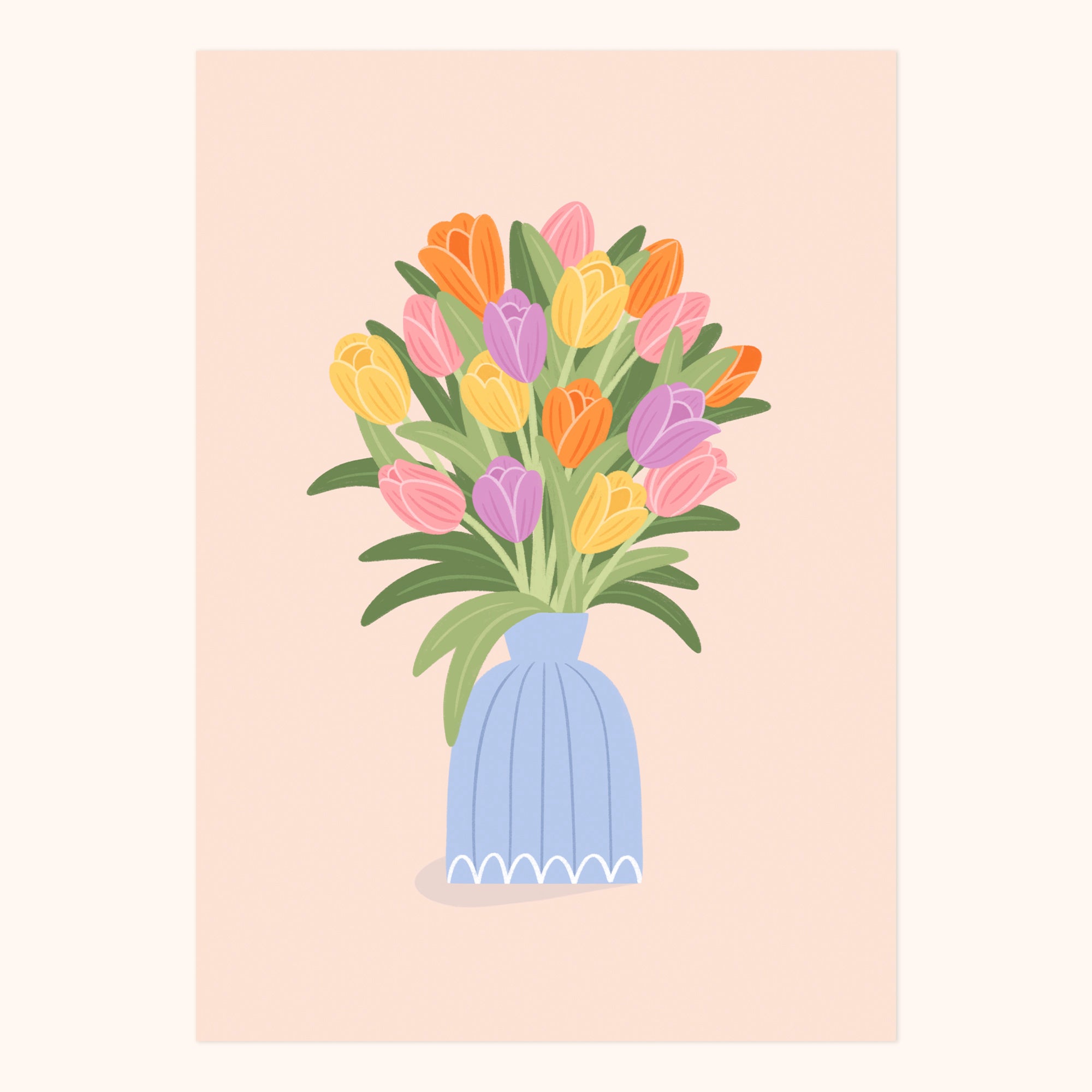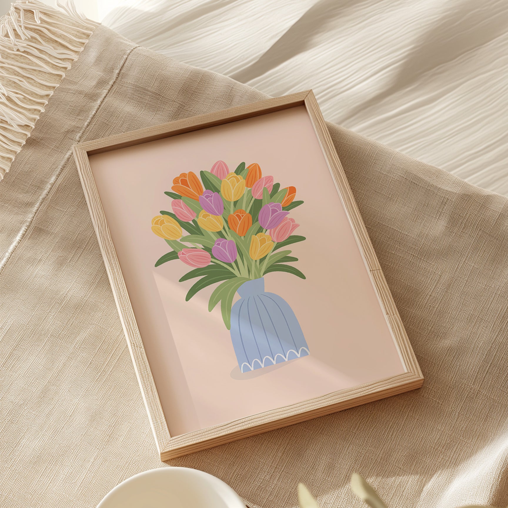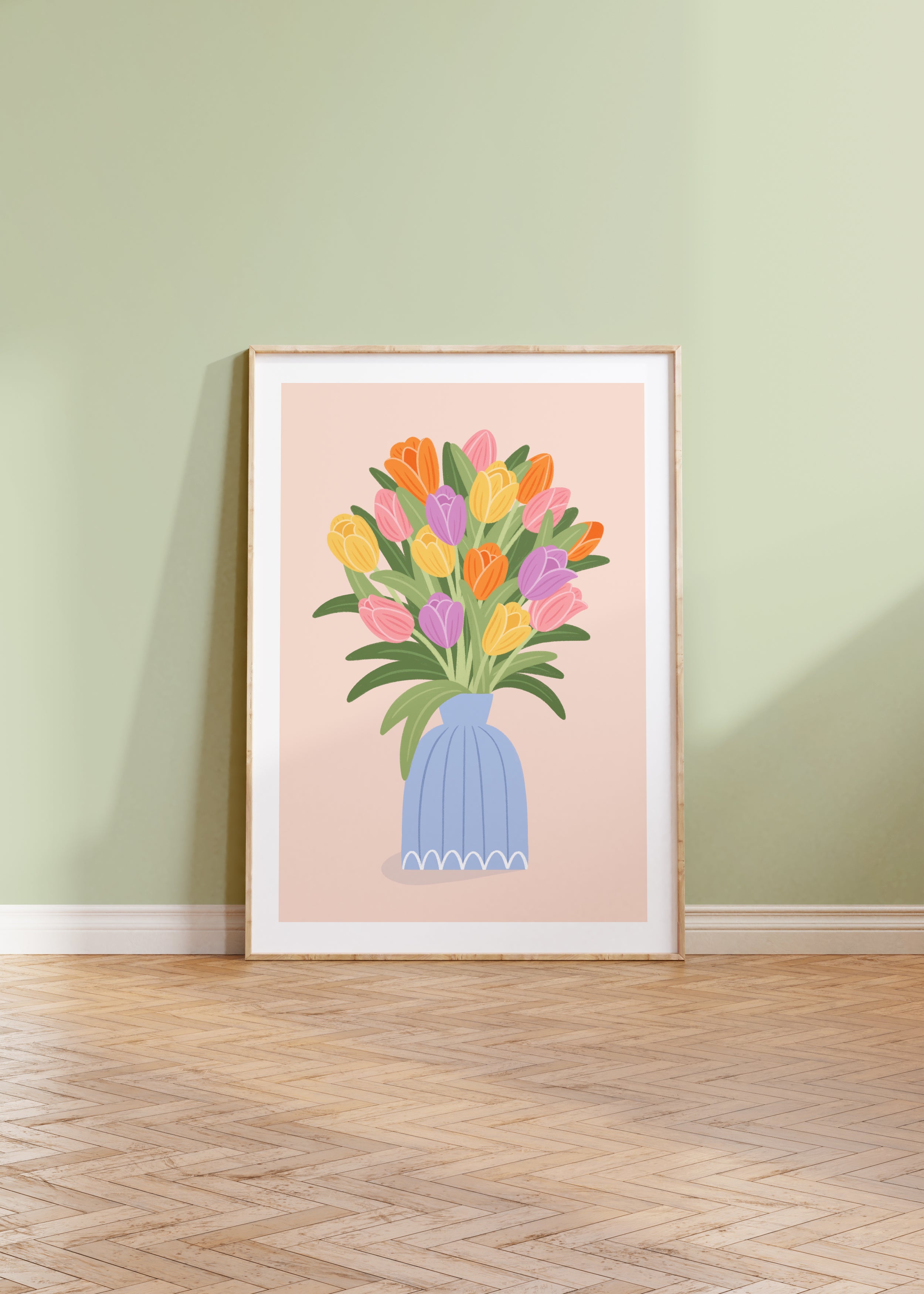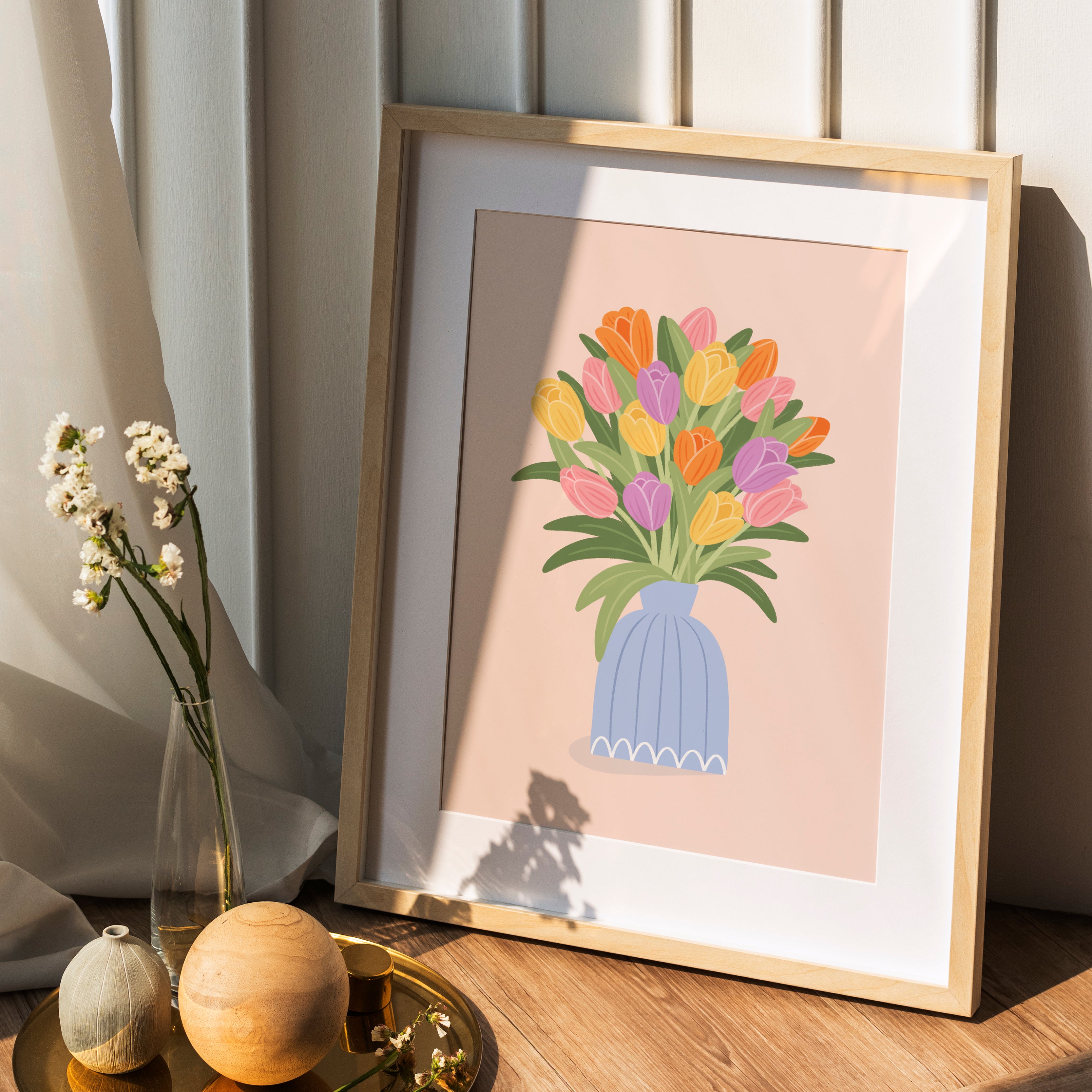 Floral Tulips print. Bring the timeless beauty of colourful tulips indoors with this stunning tulips print. Unlike its fleeting floral counterpart, this gorgeous flower print will grace your walls for years to come.