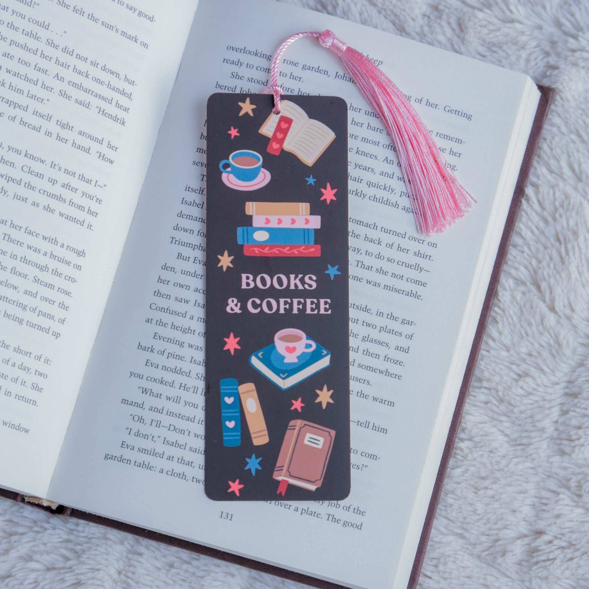 Add a touch of charm to your reading routine with our beautiful Books and Coffee bookmark.