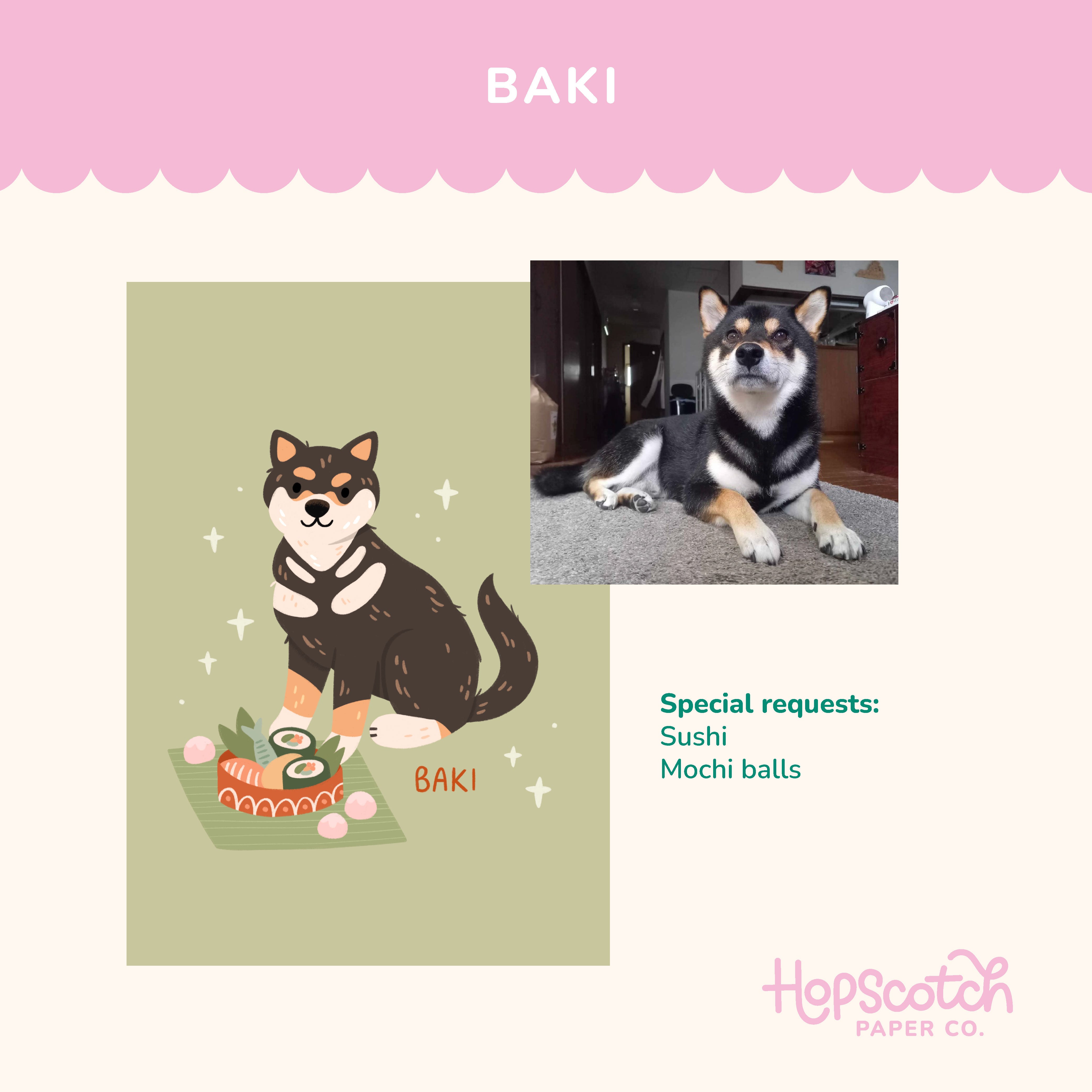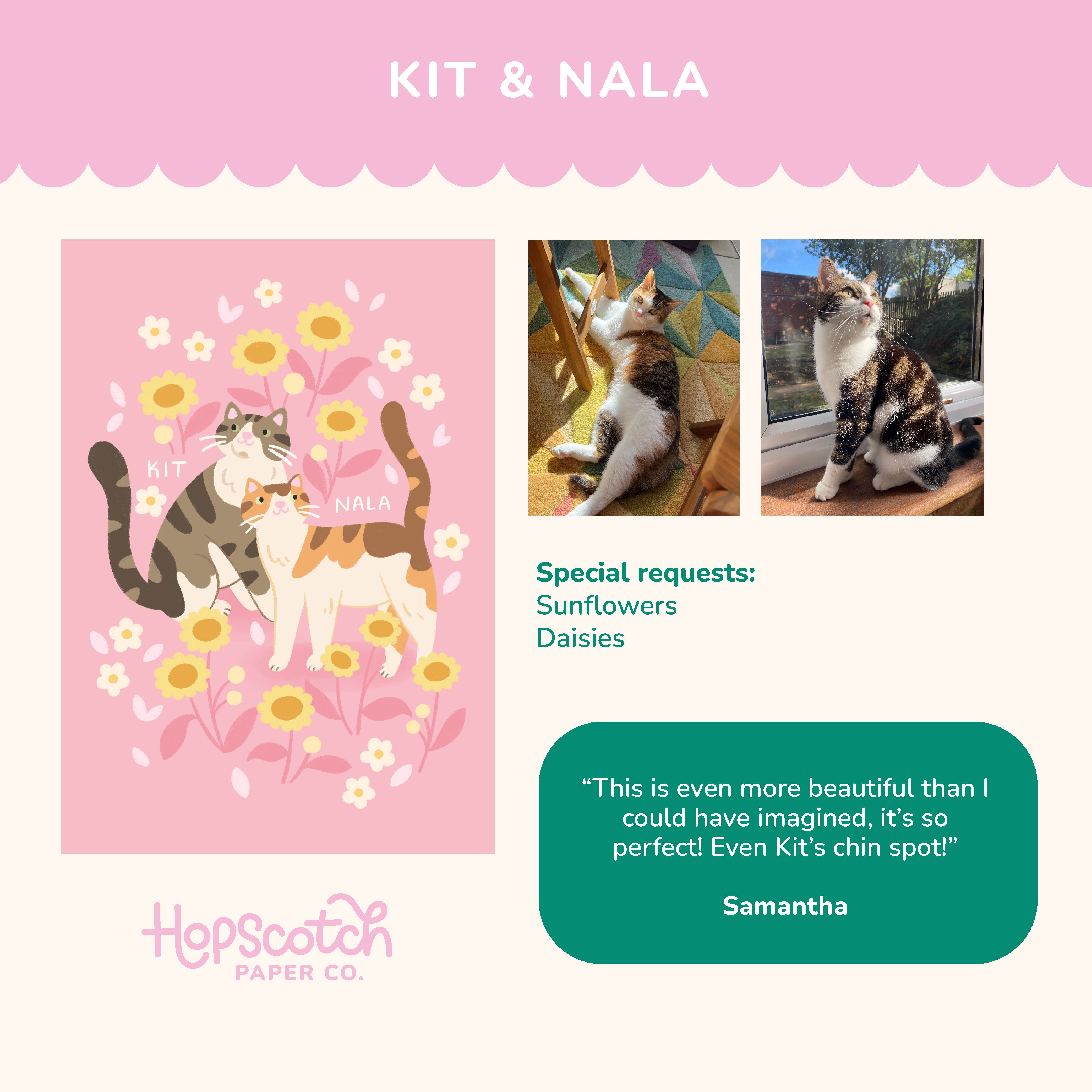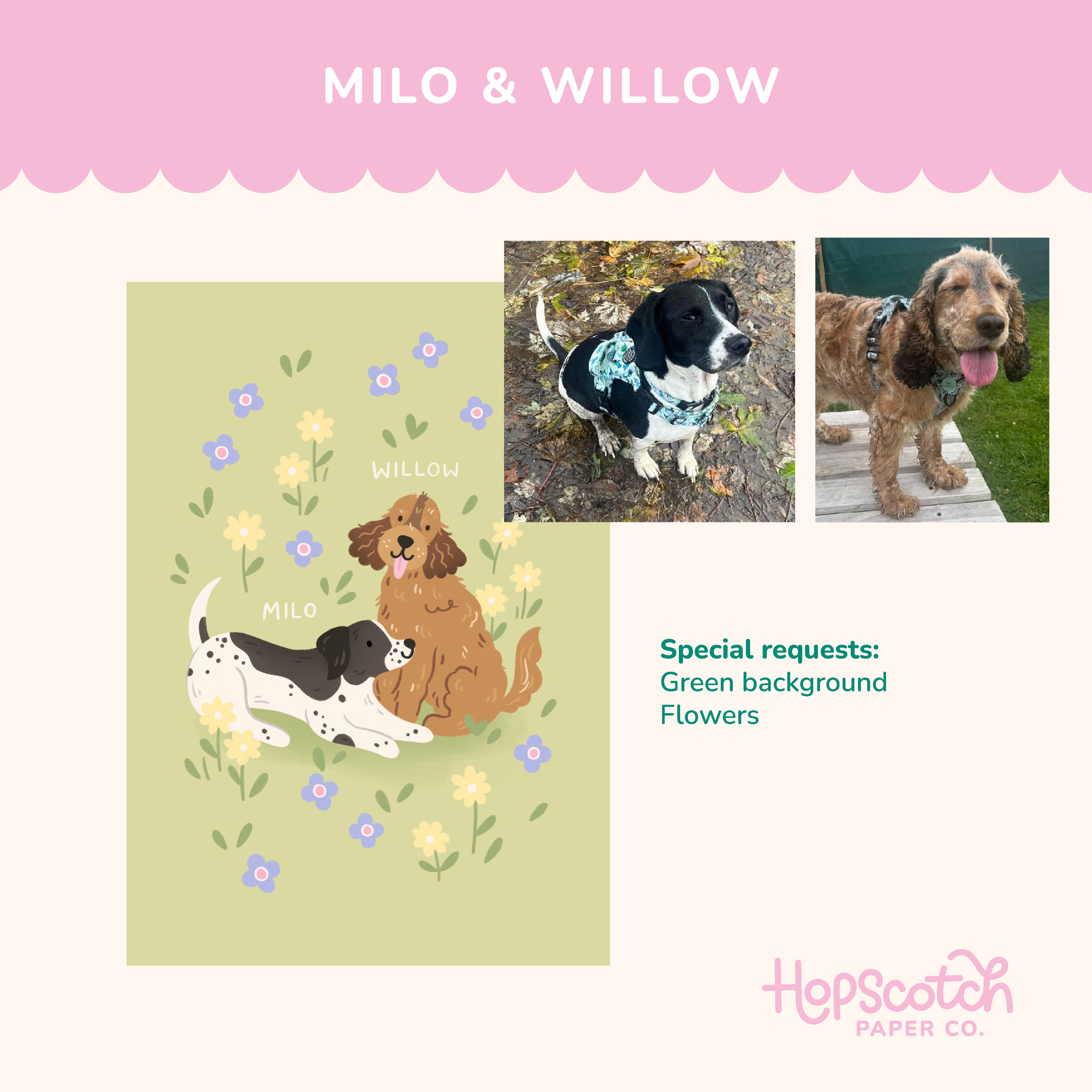 3. Email me at hopscotchpaperco@gmail.com with photos of your pets and a description of their personality. (Also include anything else you'd like me to include on like specific colours, a favourite toy of theirs or their name.)